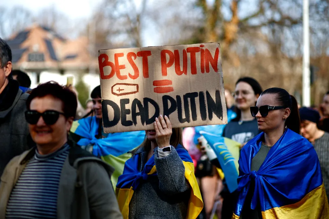 Marș de furie pentru Moscova și Putin și recunoștință pentru eroii Ucrainei, la București. „Rusia, stat terorist”, „Slava Ucraina”