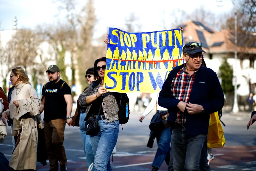 Marș de furie pentru Moscova și Putin și recunoștință pentru eroii Ucrainei, la București. „Rusia, stat terorist”, „Slava Ucraina”