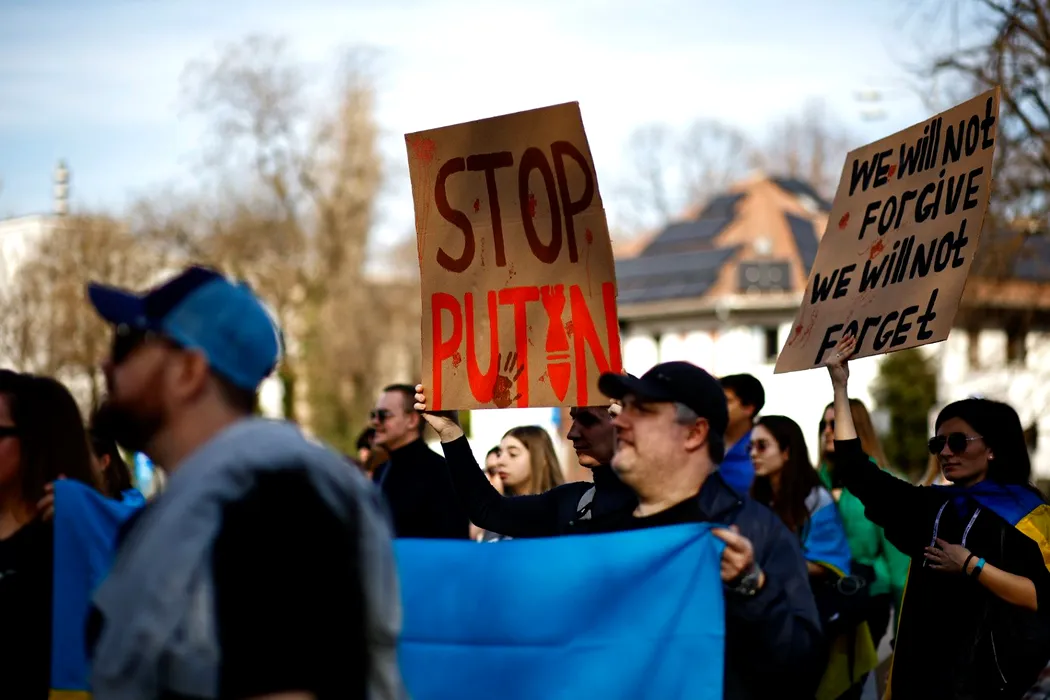 Marș de furie pentru Moscova și Putin și recunoștință pentru eroii Ucrainei, la București. „Rusia, stat terorist”, „Slava Ucraina”
