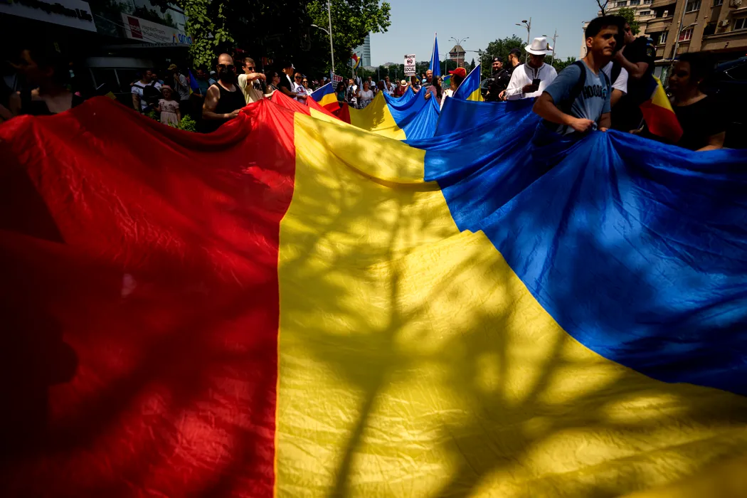 Persoane tin un steag tricolor in timpul ”Marsului Normalitatii”, care sustine familia formata dintre un barbat si o femeie in Bucuresti, sambata, 7 iunie 2025. Cateva sute de persoane au participat la Marsul normalitatii, care sustine familia formata dintre un barbat si o femeie. ANDREEA ALEXANDRU / MEDIAFAX FOTO