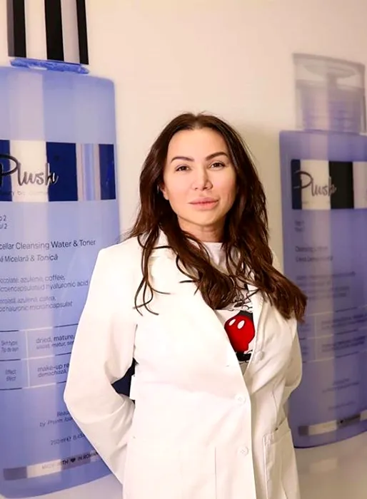 Deși e acuzată de zeci de tinere că le-a distrus tenul cu produsele cosmetice, ”dermatologul vedetelor” susține că e în perfectă legalitate: „Produsele au tot ce trebuie să fie pe piață”. Foto: PlushBioCosmetisc Facebook