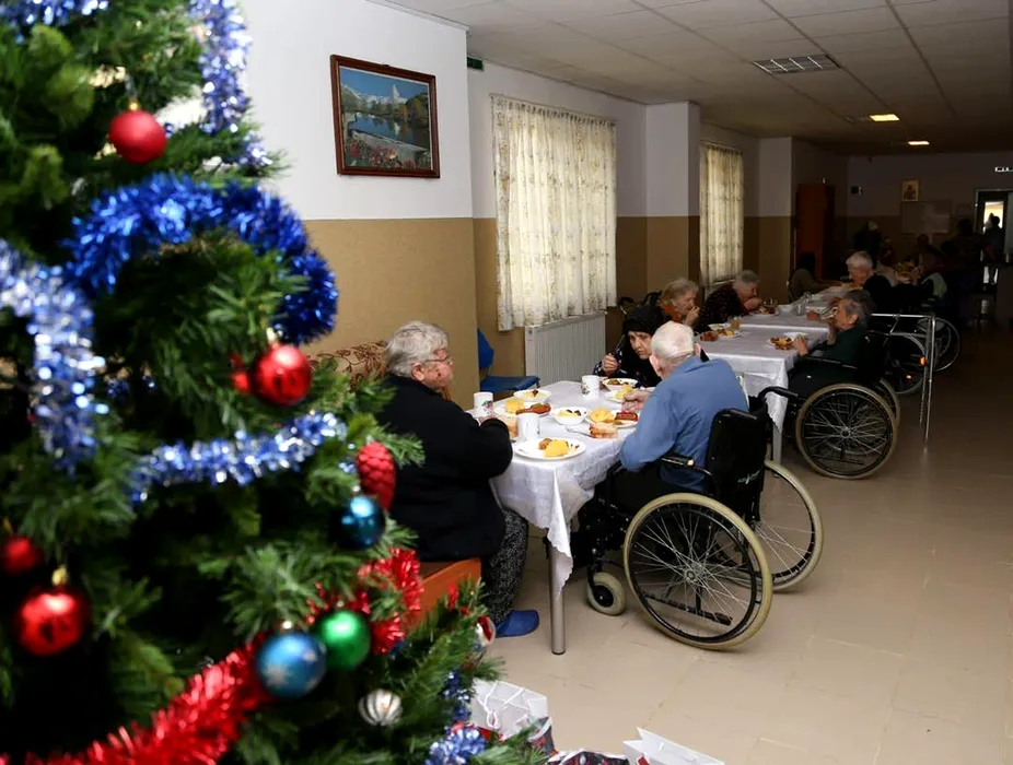 Masă festivă de Crăciun pentru bătrânii de la Căminul din Periș, Ilfov (P)