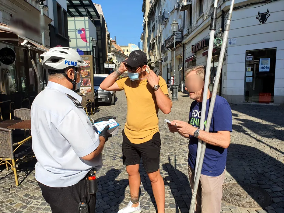 Masca la control în Centrul Vechi: „Hai, bă, nene, lasă-mă. De ce să port mască?” GALERIE FOTO din timpul acțiunii desfășurate de Poliție în zona Lipscani