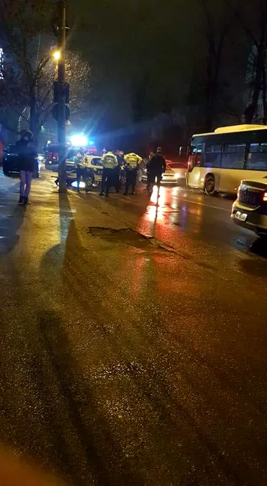 Mașină de poliție lovită de autobuz, în Capitală! Doi agenți primesc îngrijiri medicale / FOTO