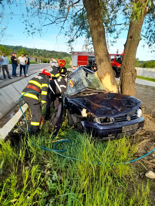 FOTO | Mașină intrată într-un copac, pe un drum din Hunedoara. Șoferul a murit, iar o femeie a fost grav rănită