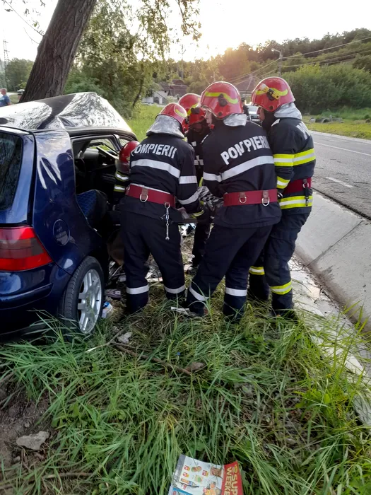 FOTO | Mașină intrată într-un copac, pe un drum din Hunedoara. Șoferul a murit, iar o femeie a fost grav rănită