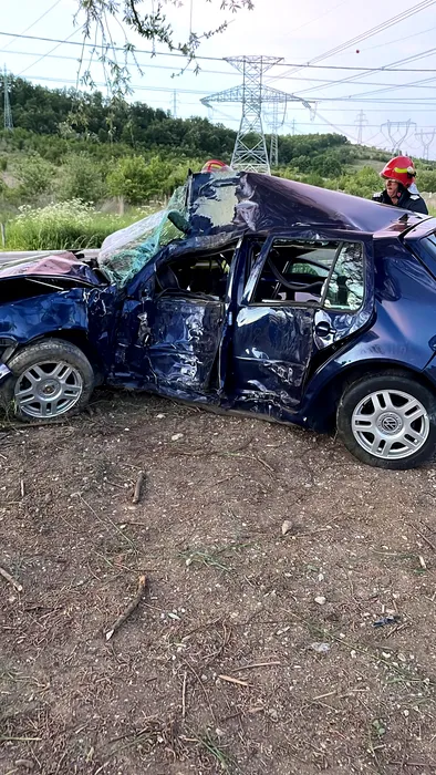 FOTO | Mașină intrată într-un copac, pe un drum din Hunedoara. Șoferul a murit, iar o femeie a fost grav rănită