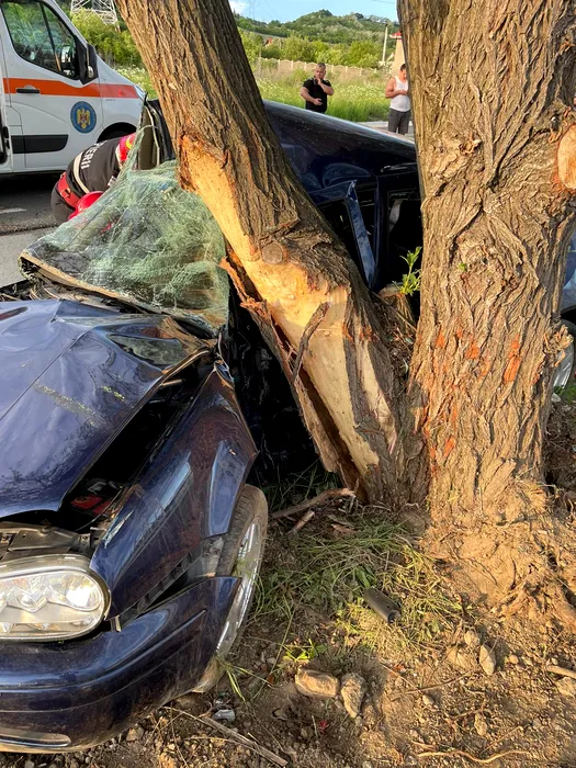FOTO | Mașină intrată într-un copac, pe un drum din Hunedoara. Șoferul a murit, iar o femeie a fost grav rănită