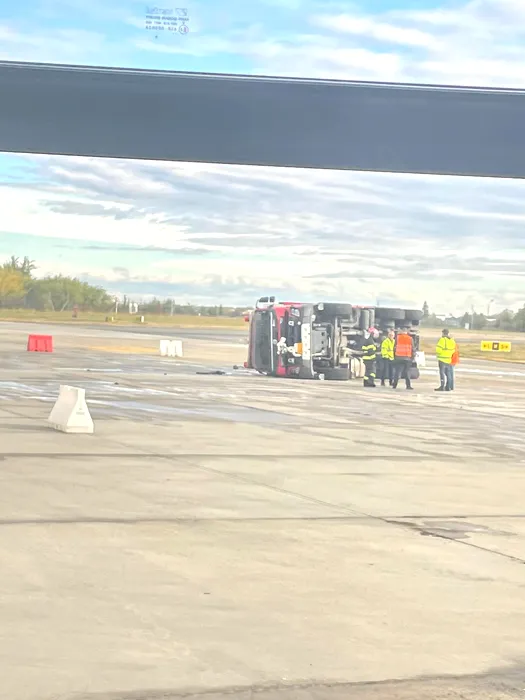 FOTO - O mașină de pompieri s-a răsturnat pe platforma Aeroportului Otopeni / Nu sunt persoane rănite / Sursa foto: GÂNDUL