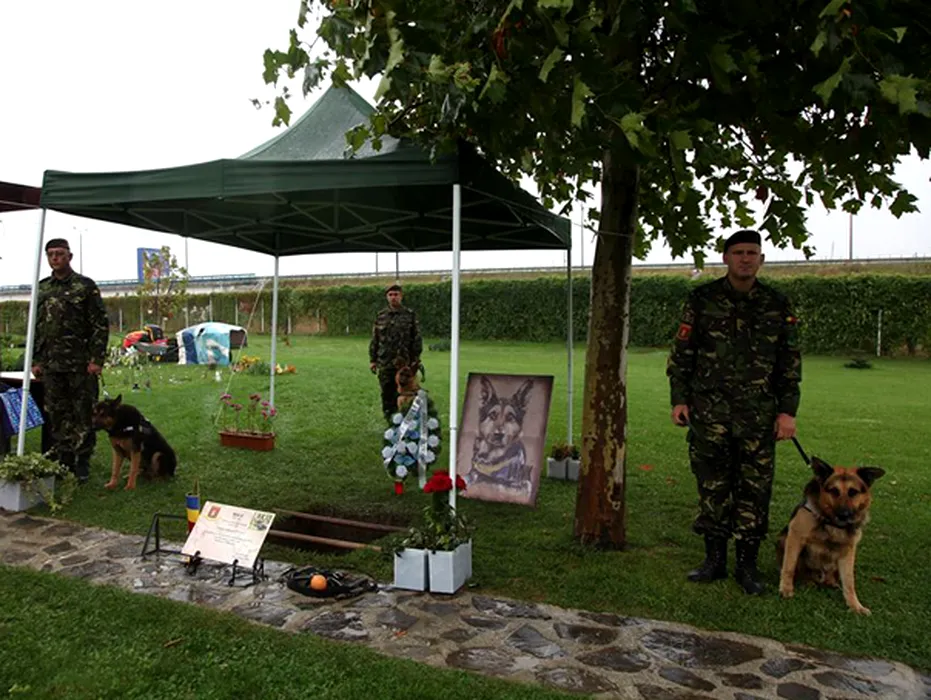 Max, câinele erou al Armatei Române, înmormântat cu onoruri militare. IMAGINI emoționante din timpul ceremoniei