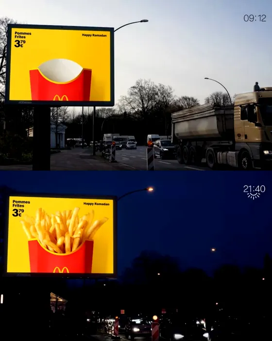 McDonald’s a lansat o campanie publicitară neobișnuită în Germania în perioada Ramadanului. Sunt afișate ambalajele goale, pentru a nu crea pofte
