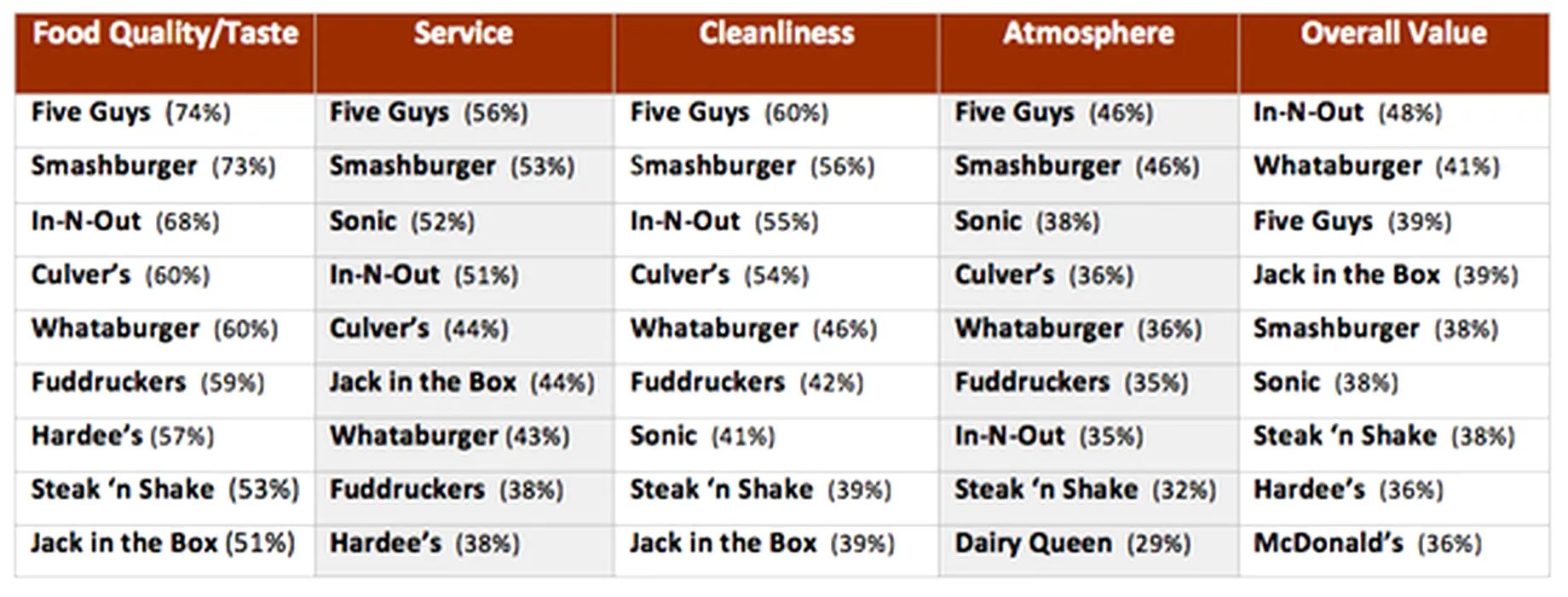 McDonald’s și Burger King, pe ultimele locuri. Care este burgerul preferat al americanilor