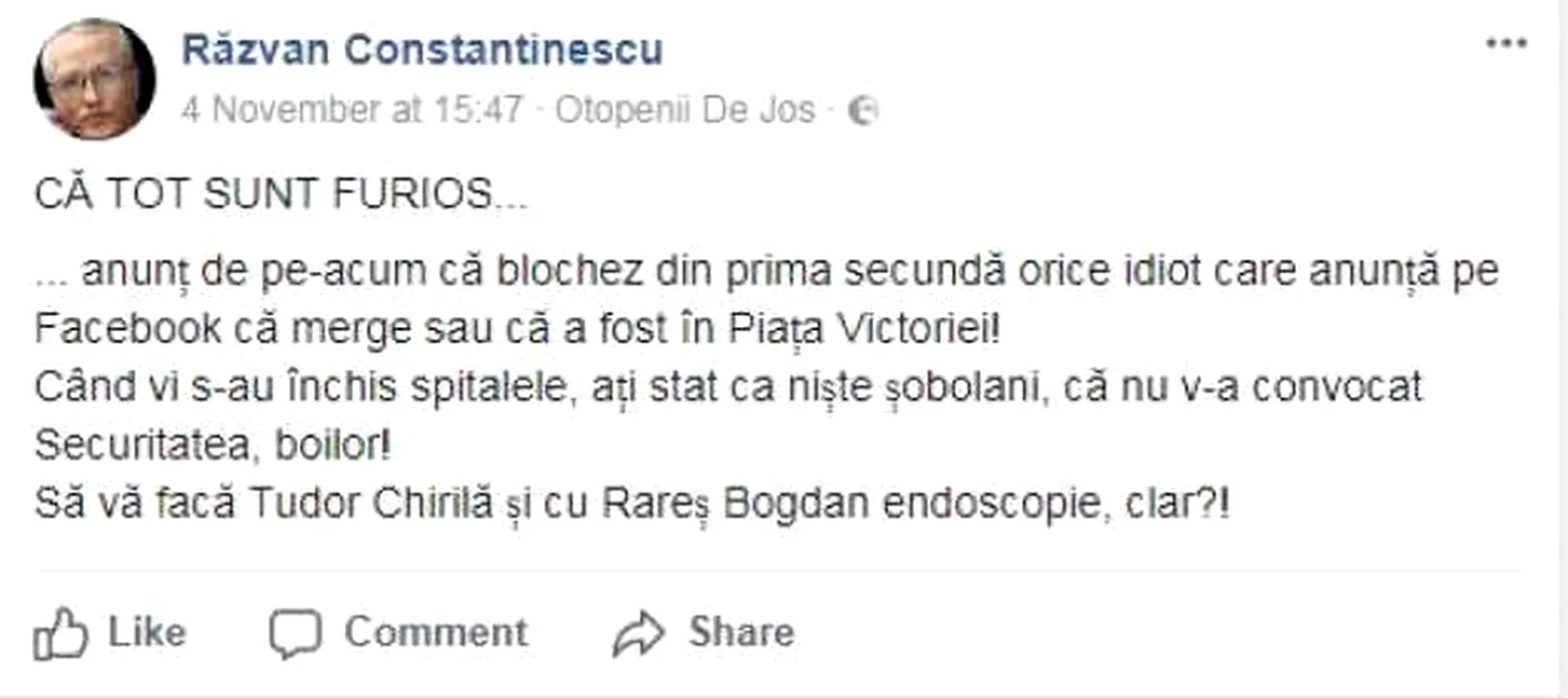 Medicul român care i-a numit pe protestarii din Piața Victoriei „boi” lovește din nou! Despre cei ce poartă măști medicale: „Imbecili care umblă cu chiloțeii pe nas”