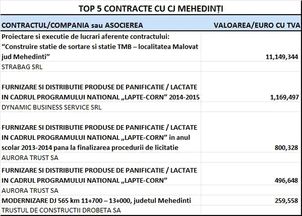 MEHEDINȚI. Unde au mers banii publici în 2014. Topul firmelor care au contracte locale cu statul