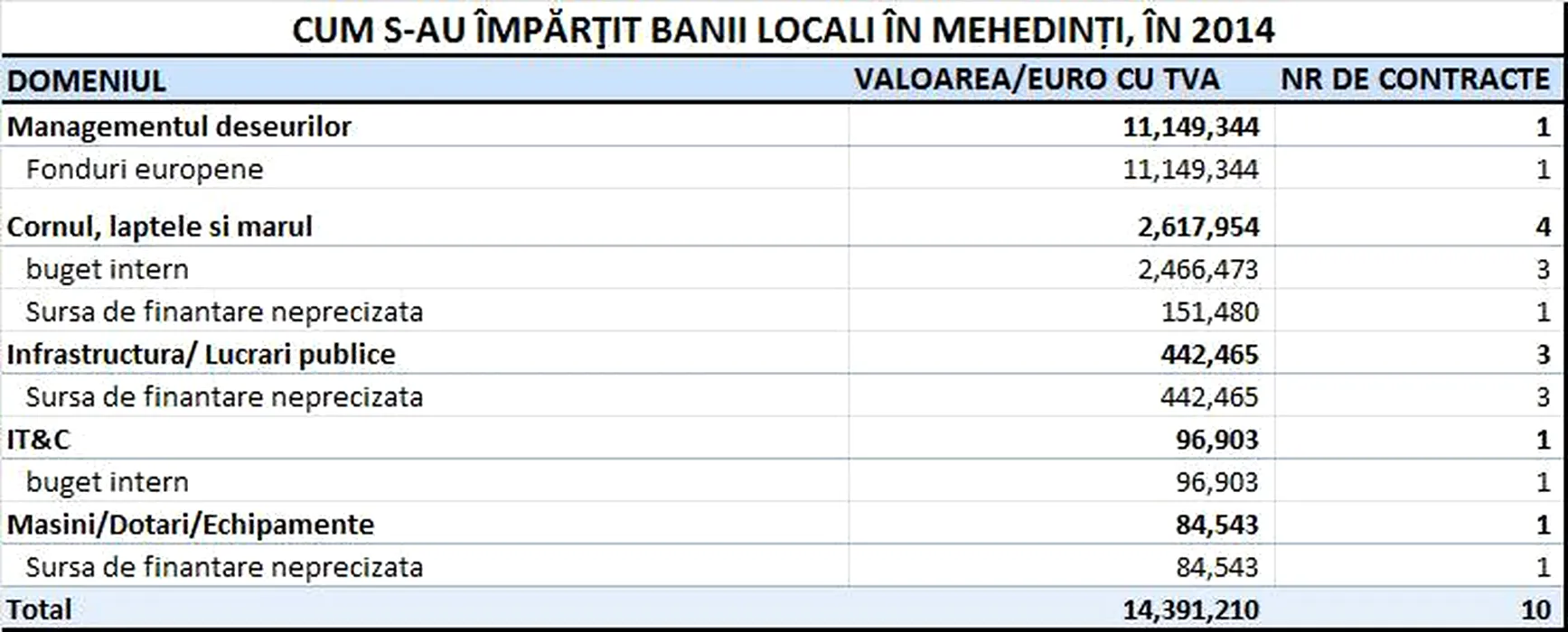 MEHEDINȚI. Unde au mers banii publici în 2014. Topul firmelor care au contracte locale cu statul