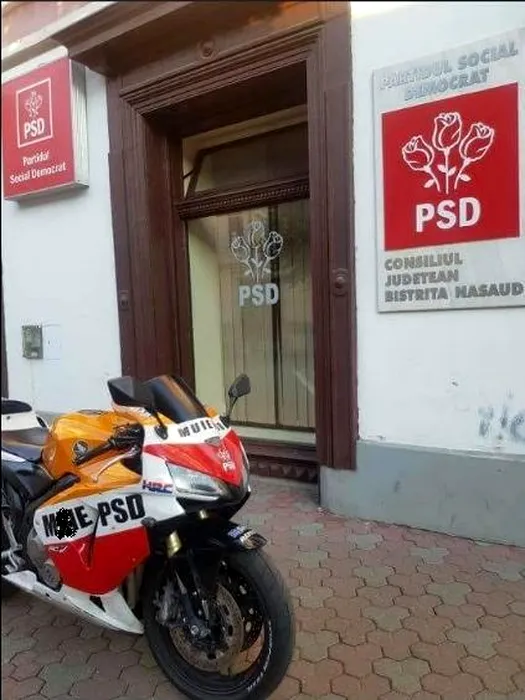 „M..EPSD” devine un FENOMEN. Mesajul a apărut pe zidul de lângă casa memorială a unui SCRIITOR CELEBRU și pe o MOTOCICLETĂ parcată în fața unui sediu PSD