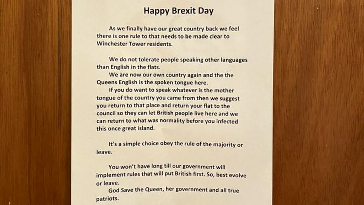 Mesaje de amenințare pentru imigranții din Marea Britanie, afișate într-un bloc social: Nu mai tolerăm persoane care vorbesc altă limbă decât engleza
