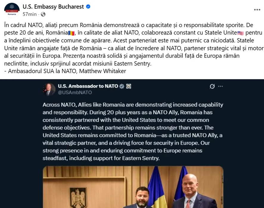 Mesajul Ambasadei SUA la București, după retragerea trupelor americane: Statele Unite rămân angajate față de România