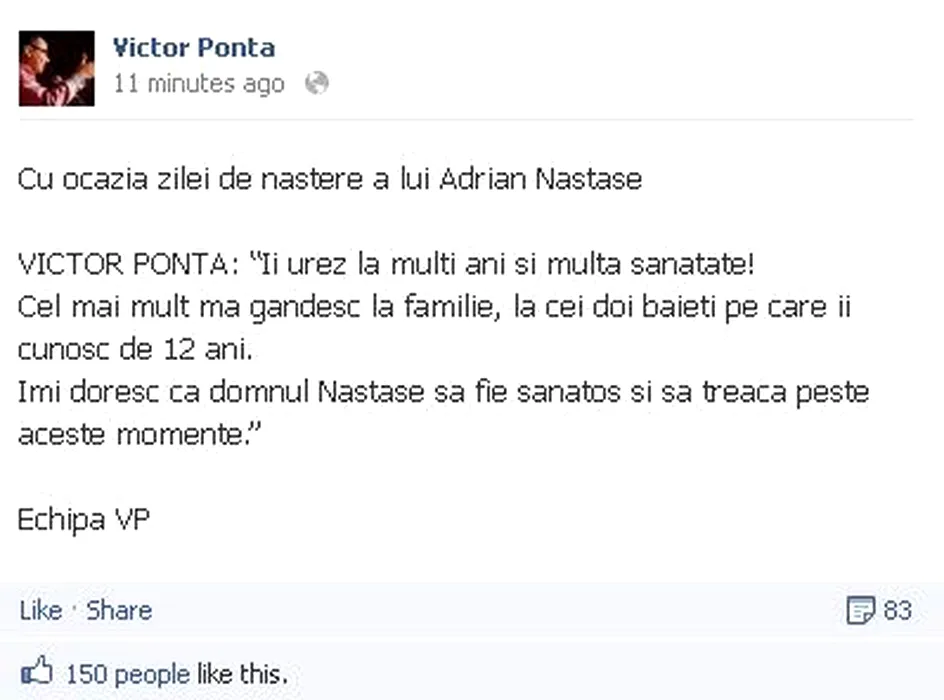 Mesajul lui Victor Ponta pentru Adrian Năstase, de ziua lui: