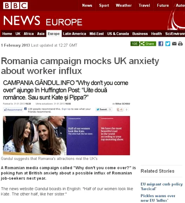 MESAJUL ROMÂNILOR A AJUNS ÎN ÎNTREAGA LUME. Campania Gândul „Why Don”t You Come Over?”, dezbătută în presa din Marea Britanie, SUA, Franța și Germania. Și nu ne oprim aici