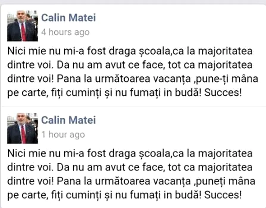 GALERIE FOTO: Mesajul unui deputat PSD pentru elevi: „Pune-ți” mâna pe carte, fiți cuminți și nu fumați în budă!