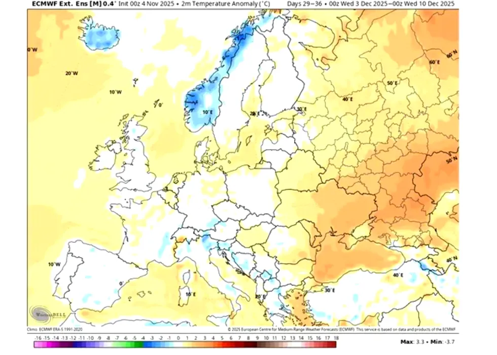 Meteorologii anunță o lună DECEMBRIE cu vreme neobișnuită. Ce se întâmplă în București și unde va ninge. Două hărți relevante