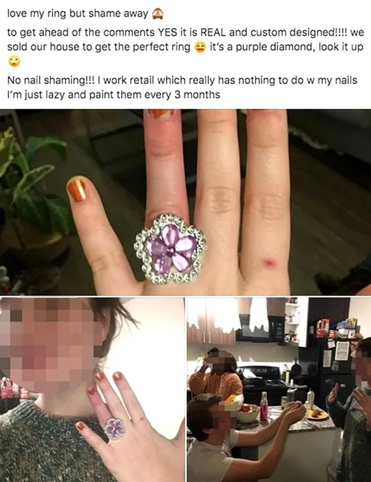 „Mi-am vândut locuința pentru a-mi cumpăra inelul de logodnă perfect, dar oamenii râd de el”. O mireasă batjocorită pe internet după ce și-a arătat bijuteria – FOTO