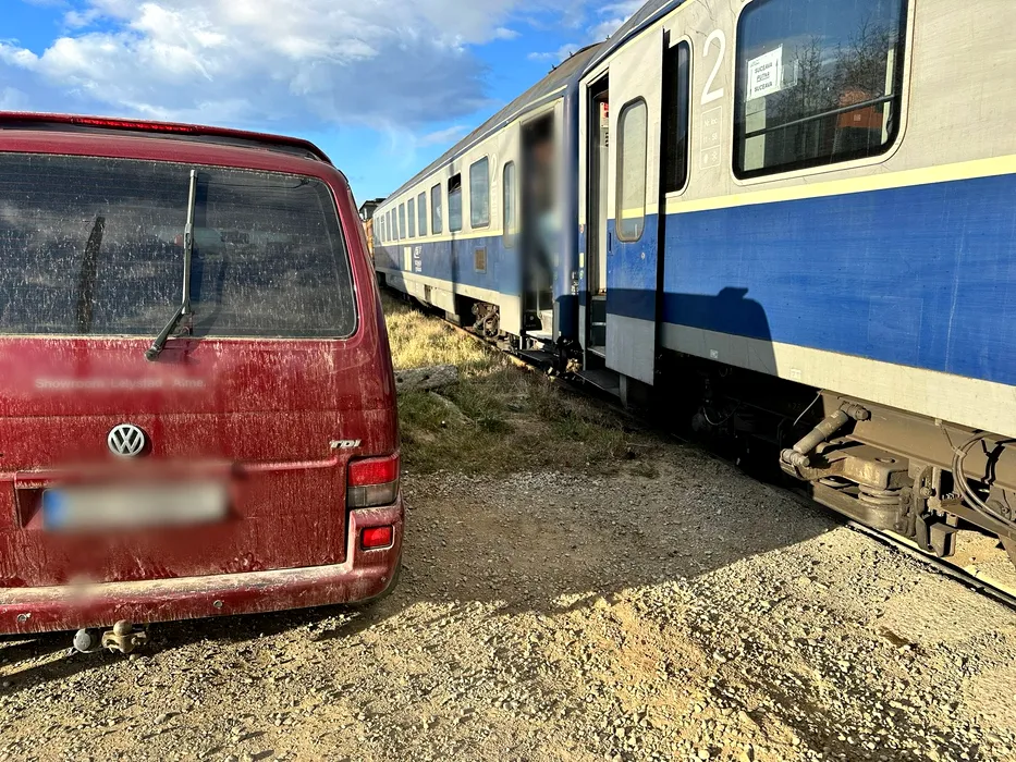 Microbuz LOVIT de tren, în județul Suceava. Pompierii au acționat cu o autospecială pentru descarcerare și o ambulanță SMURD
