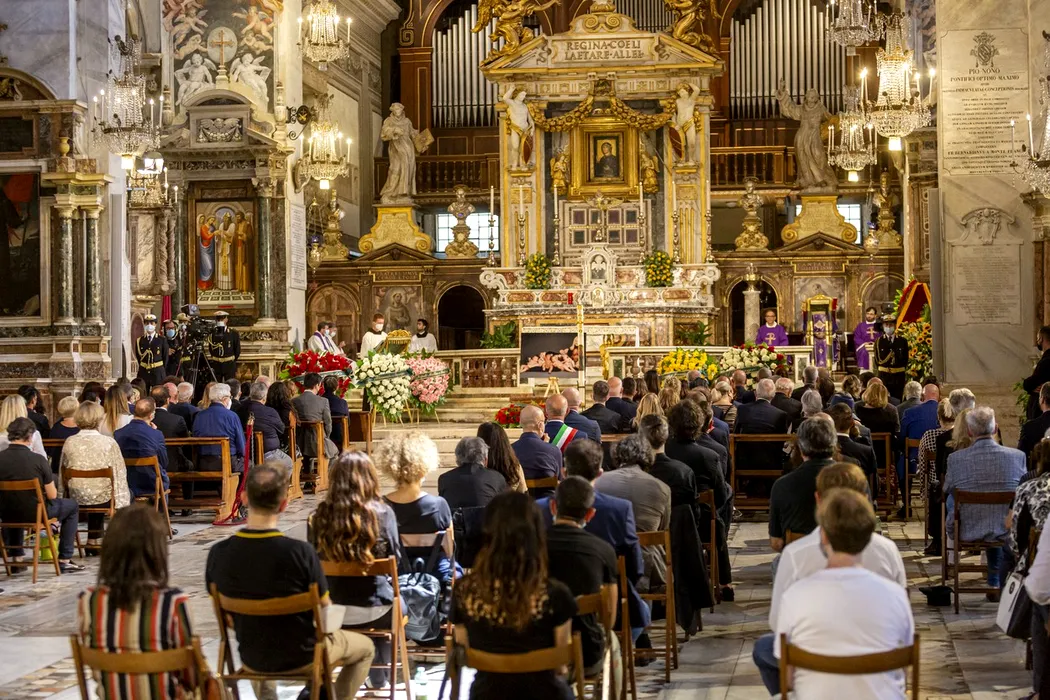 Inside the church of Santa Maria in Ara Coeli at the funeral of Raffaella Carrŕ