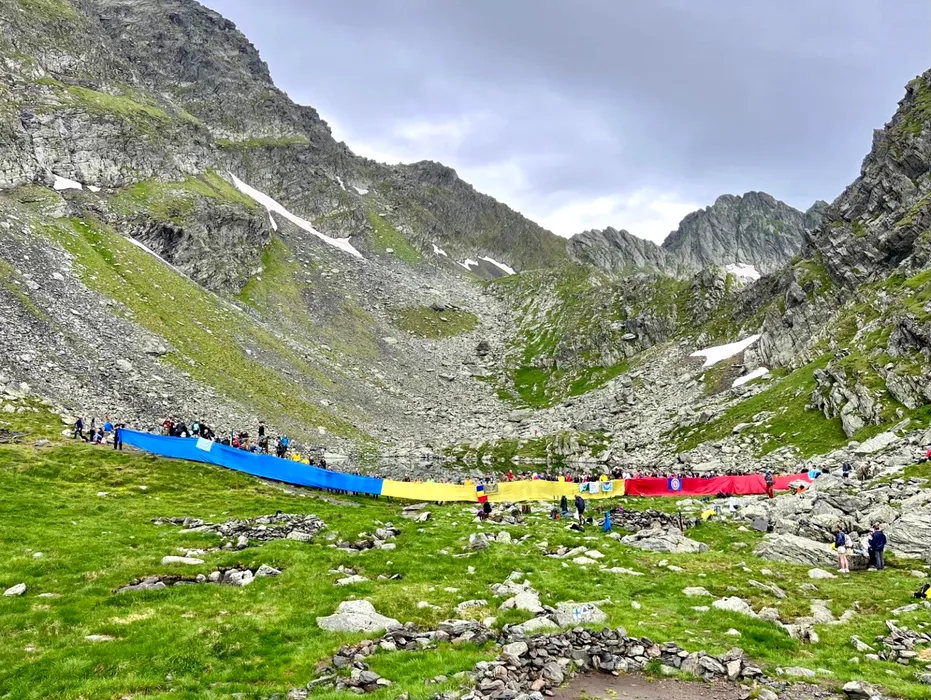 Militarii Invictus și Mihai Covaliu, președintele COSR, acțiune de suflet pe vârful Omu. Ce au făcut de Ziua Drapelului