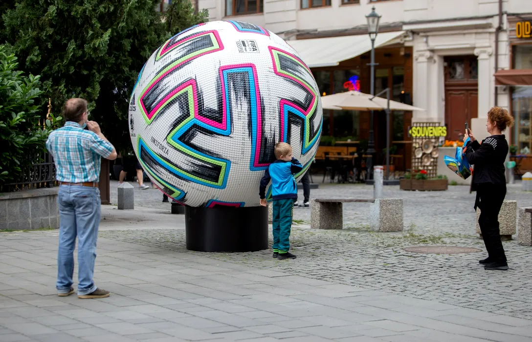 Bucureștiul se pregătește de EURO 2020. Mingea oficială, expusă pe două străzi din centrul Capitalei (FOTO)