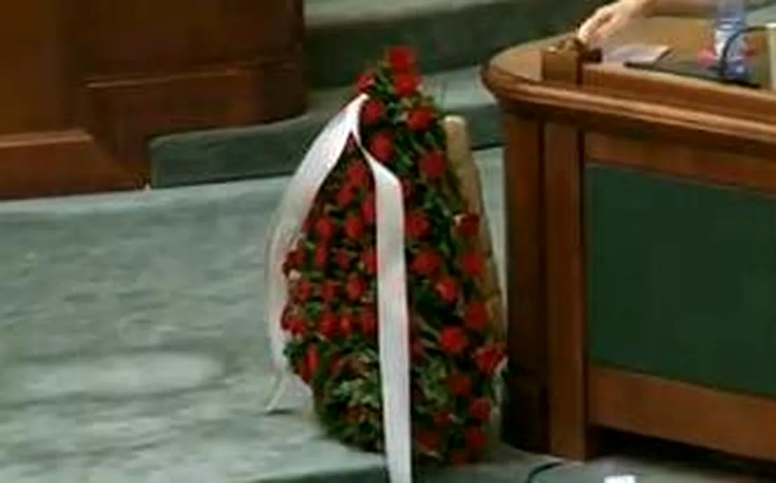 Ministrul Finanțelor, Ioana Petrescu, a primit de la senatorii PNL o coroană funerară. „Condoleanțe!”