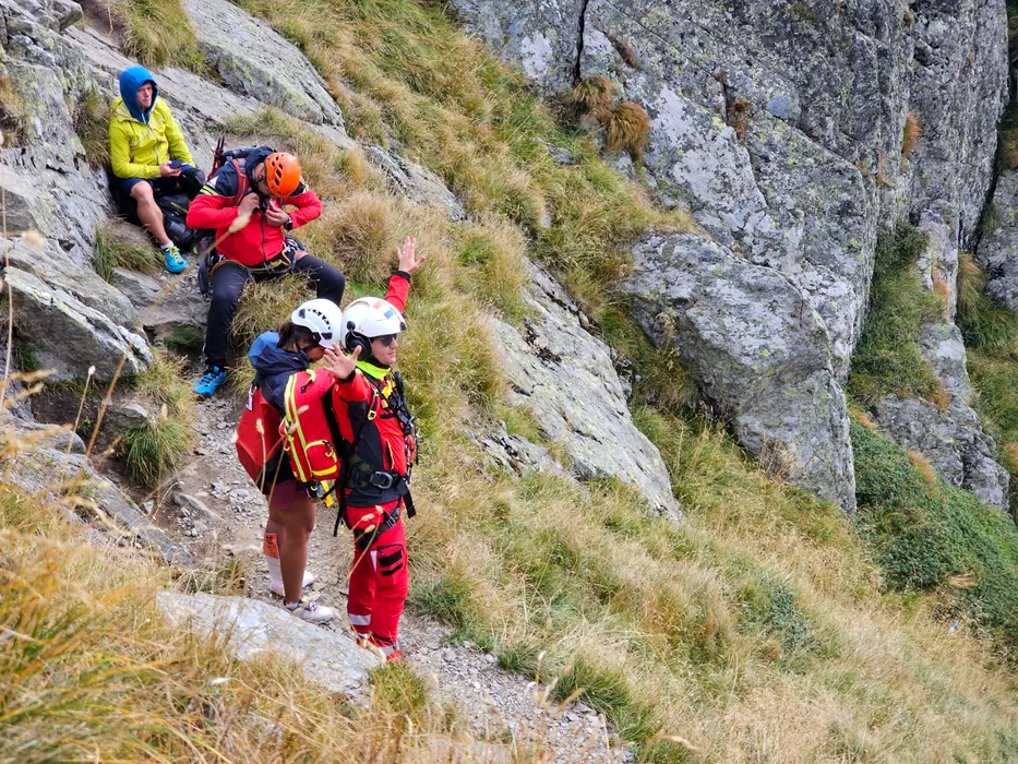 Misiune spectaculoasă. O alpinistă a fost salvată de la „TREI PAȘI DE MOARTE”, Masivul Făgăraș