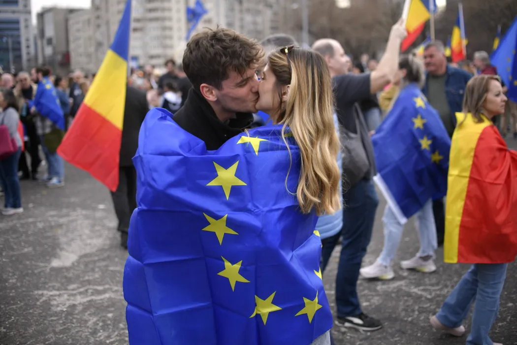 Mii de oameni la MITINGUL pro-european. Piața Victoriei a devenit o mare de albastru când oamenii au aprins luminițe și au cântat Imnul UE