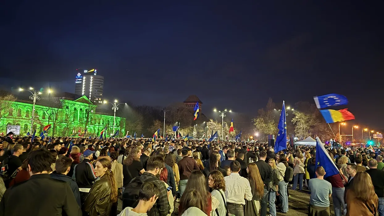 Mii de oameni la MITINGUL pro-european. Piața Victoriei a devenit o mare de albastru când oamenii au aprins luminițe și au cântat Imnul UE
