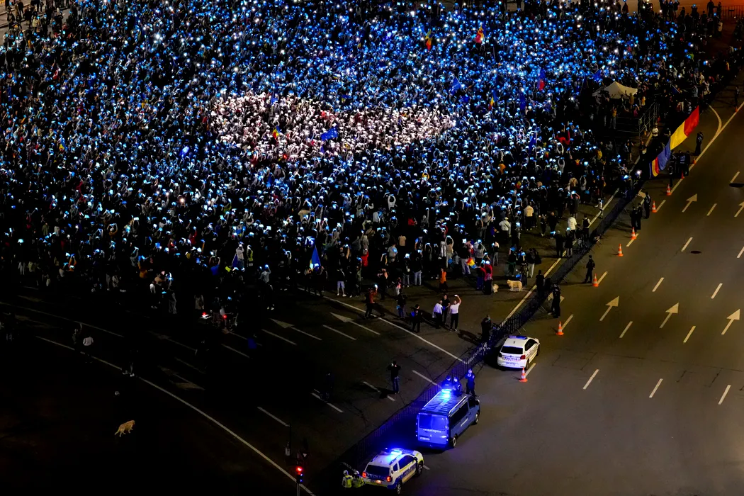 Mii de oameni la MITINGUL pro-european. Piața Victoriei a devenit o mare de albastru când oamenii au aprins luminițe și au cântat Imnul UE