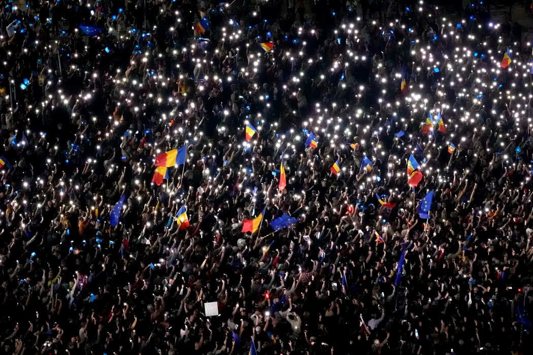 Mii de oameni la MITINGUL pro-european. Piața Victoriei a devenit o mare de albastru când oamenii au aprins luminițe și au cântat Imnul UE