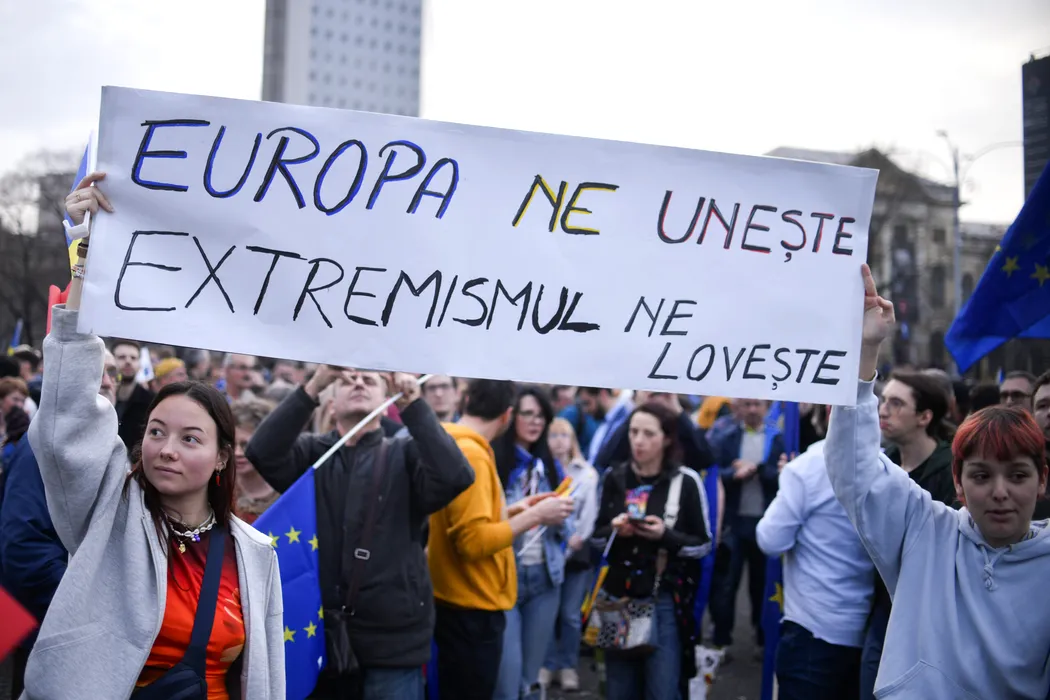 Mii de oameni la MITINGUL pro-european. Piața Victoriei a devenit o mare de albastru când oamenii au aprins luminițe și au cântat Imnul UE