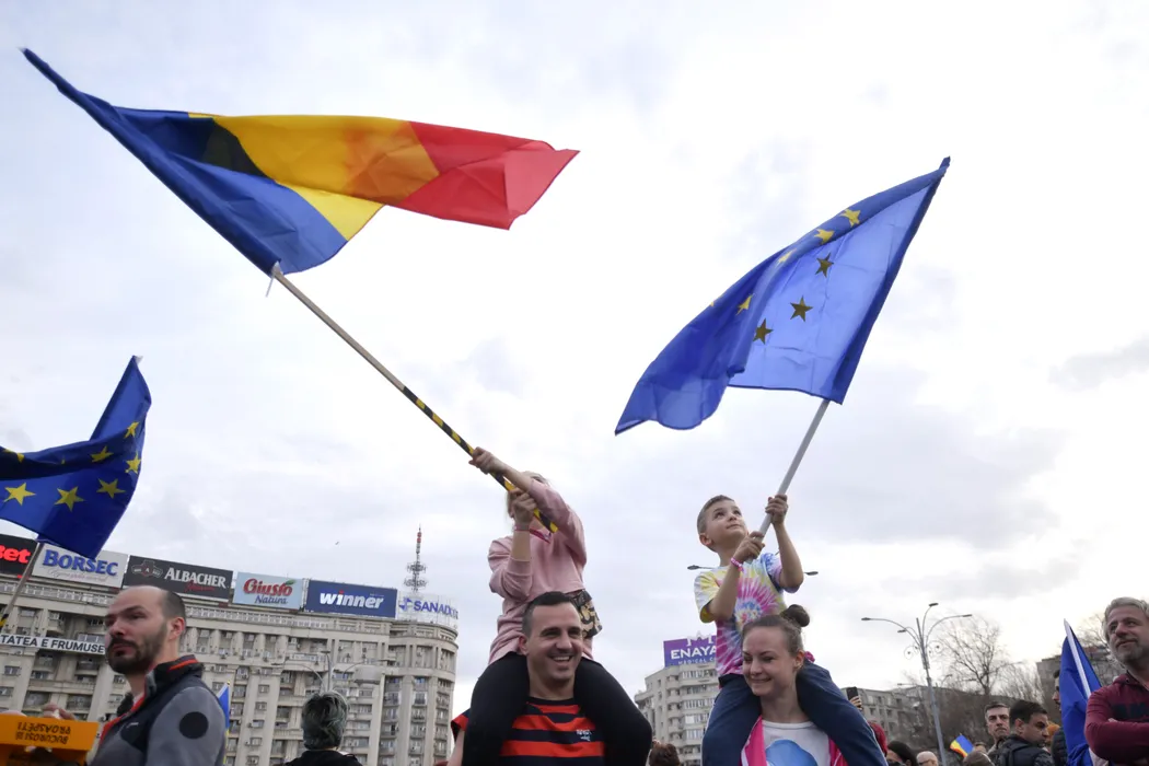 Mii de oameni la MITINGUL pro-european. Piața Victoriei a devenit o mare de albastru când oamenii au aprins luminițe și au cântat Imnul UE