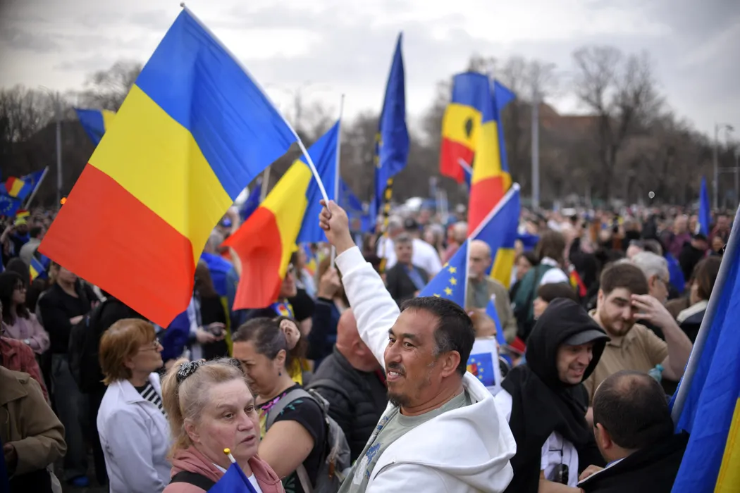 Mii de oameni la MITINGUL pro-european. Piața Victoriei a devenit o mare de albastru când oamenii au aprins luminițe și au cântat Imnul UE