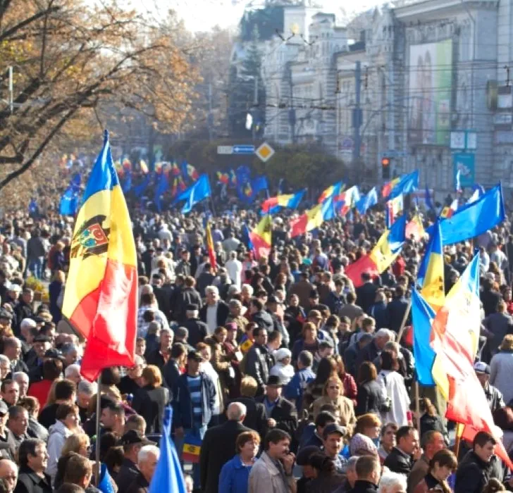 Miting pro-Europa la Chișinău, înainte de „testul Vilnius”. 100.000 de oameni au ieșit în stradă pentru a susține integrarea europeană a Republicii Moldova