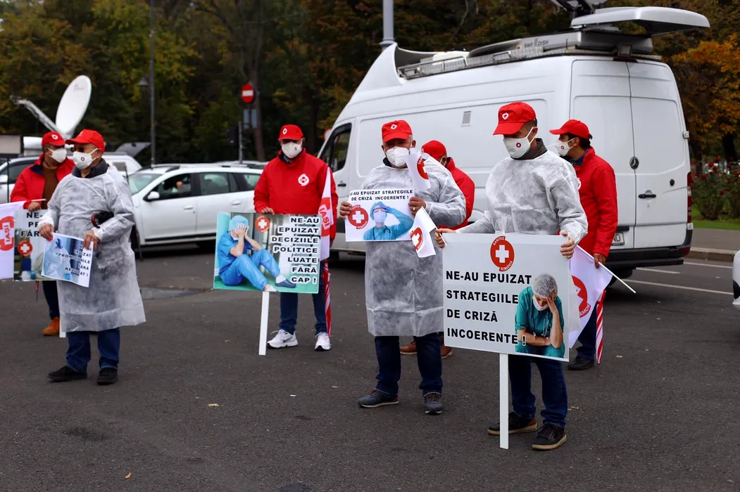 „Mitingul epuizării”. Federația Sanitas pichetează Guvernul: Nu ni se respectă dreptul la odihnă, la protecţie, la remunerarea corectă a muncii! / Sursă FOTO: Alexandra Pandrea - Gândul