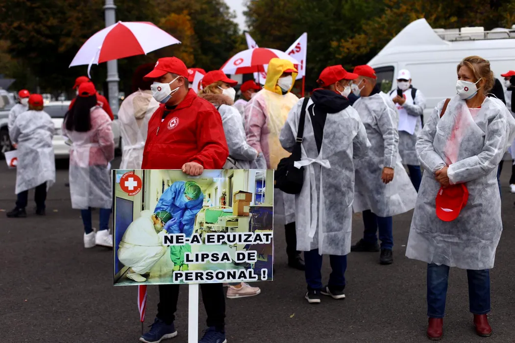 „Mitingul epuizării”. Federația Sanitas pichetează Guvernul: Nu ni se respectă dreptul la odihnă, la protecţie, la remunerarea corectă a muncii! / Sursă FOTO: Alexandra Pandrea - Gândul