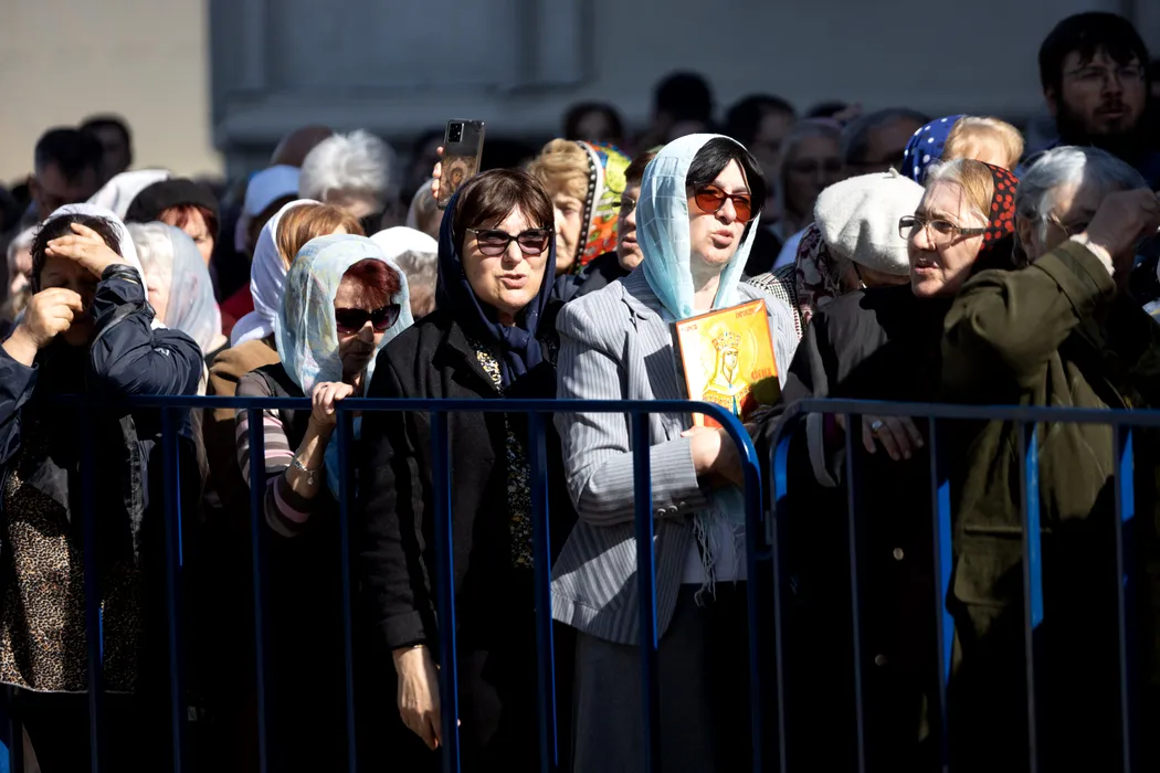 Credinciosi, preoti si maicute asteapta sa se inchine la Moastele intregi ale Sfintei Imparatese Elena, mama Sfantului Imparat Constantin cel Mare, aduse in pelerinaj de la Venetia, la Catedrala Patriarhala din Bucuresti, miercuri, 30 aprilie 2025. ALEXANDRA PANDREA/GMN