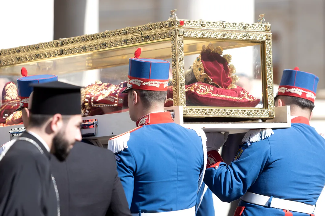 Sosirea Moastelor Sfintei Imparatese Elena, mama Sfantului Imparat Constantin cel Mare, aduse in pelerinaj de la Venetia, la Catedrala Patriarhala din Bucuresti, miercuri, 30 aprilie 2025. ALEXANDRA PANDREA/GMN