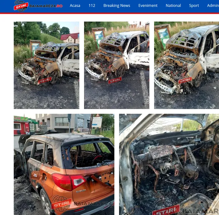 MOLOTOV. Mașina personală a șefului Poliție de Frontieră Vișeu de Sus, incendiată la Moisei (VIDEO)