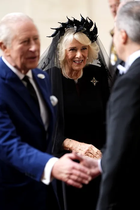 King Charles III and Queen Camilla arrive at the San Damaso Courtyard, in St Peter's Square, during the state visit to the Holy See. Picture date: Thursday October 23, 2025.