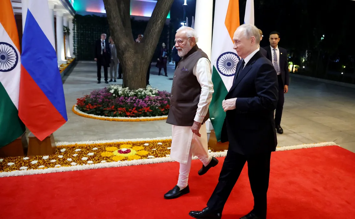 Momente inedite de la vizita lui Putin în India. Premierul Modi i-a organizat o ceremonie spectaculoasă în fața Palatului Prezidențial din New Delhi