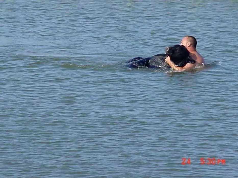 Momentele emoționante în care un om salvează un urs de 200 de kilograme de la înec