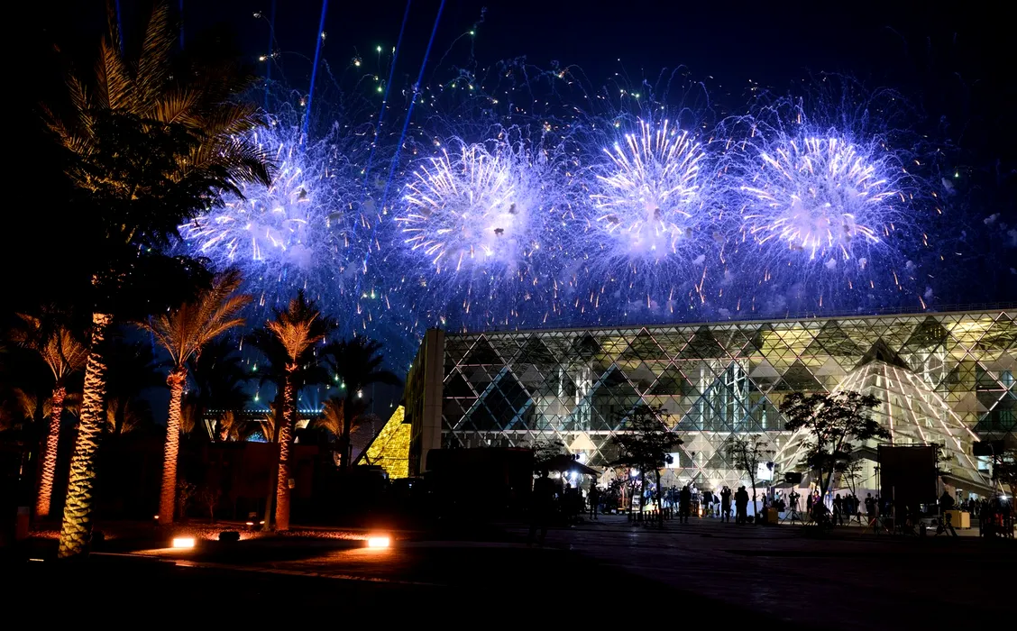 GALERIE FOTO: Antichitatea a întâlnit modernitatea pe cerul din Cairo. Sute de drone au compus chipuri de faraoni, zei­tăți și construcții-simbol ale Egiptului Antic. Un spectacol uriaș de artificii a încheiat ceremonia dedicată inaugurării celui mai mare Muzeu de Arheologie al lumii